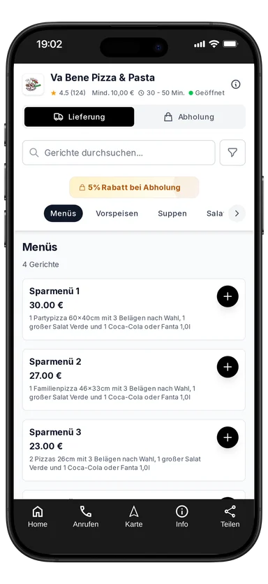 2 Pizzas 26cm mit 3 Belägen nach Wahl, 1 großer Salat Verde und 1 Coca-Cola oder Fanta 1,0l